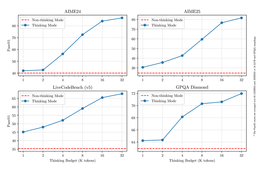 The analysis of Qwen 3 research showed that models that allow reasoning with more tokens at inference time performed much better in mathematical reasoning tasks.